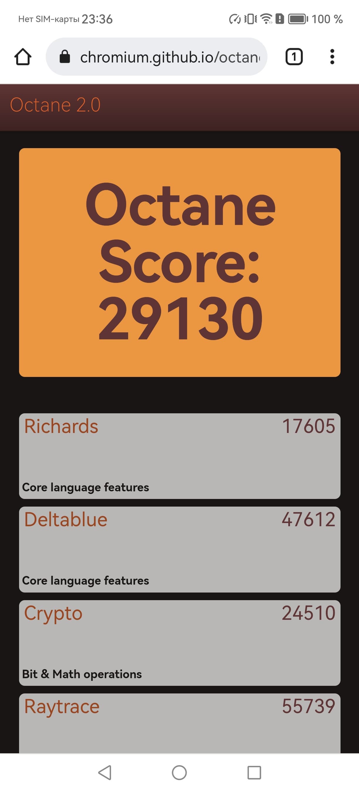 | Google Octane 2 (больше — лучше) | 29130 | 29781 | 24678 | 31919 | 15320 |
