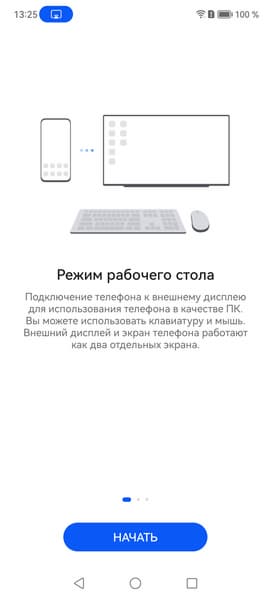 Не все приложения гарантированно могут работать корректно в таком режиме, например в данном случае при выводе окна видеоплеера MX Player во весь экран управляющая панель в нижней части экрана не убиралась, тогда как картинка штатного плеера выводилась правильно. Вывод осуществляется уже в разрешении 1920×1080 один к одному по пикселям. Отметим, что одновременно с выводом изображения и звука можно по USB подключать к смартфону мышь и клавиатуру, USB-флешки и т. д., превращая смартфон в основу для рабочего места, но для этого адаптер или монитор (имеющий вход USB Type-C) должны допускать подключение внешних USB-устройств (то есть иметь USB-концентратор). Поддерживается также подключение к проводной сети на скорости 1 Гбит/с. Для зарядки смартфона к адаптеру/док-станции потребуется подключить зарядное устройство, а мониторы со входом USB Type-C обычно сами подают питание на смартфон. В режиме рабочего стола на внешнем мониторе можно параллельно работать на самом смартфоне, то есть получается два рабочих стола одновременно, но вывод видео в режиме аппаратного декодирования осуществляется только на один экран, также одна и та же программа не может работать и там, и там. Из замеченных ошибок в работе — функция снятия снимка рабочего стола, выводимого на внешнее устройство, работала некорректно.