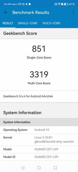 - Операционная система Android 12, EMUI 13