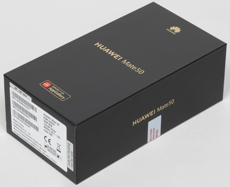 Смартфон Huawei Mate 50 упакован в большую картонную коробку с черным оформлением с золотистым тиснением. В комплекте лежат зарядное устройство с выходной мощностью 66 Вт, соединительный кабель и защитный чехол.