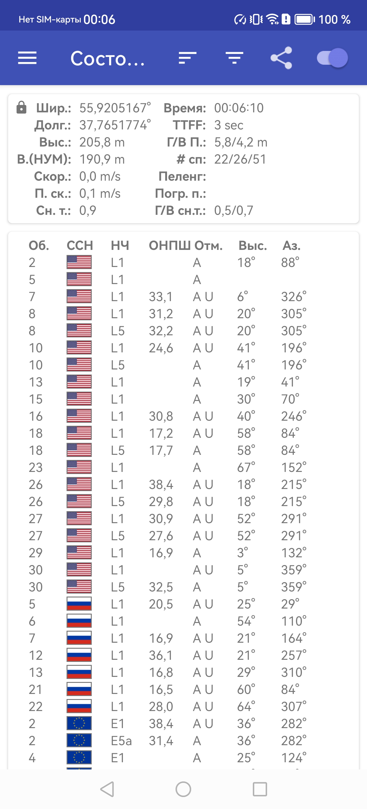 Двухдиапазонный (двухчастотный) навигационный модуль работает с GPS (с A-GPS), Глонасс, Beidou, Galileo и QZSS. Первые спутники при холодном старте обнаруживаются быстро. Все необходимые встроенные датчики установлены.