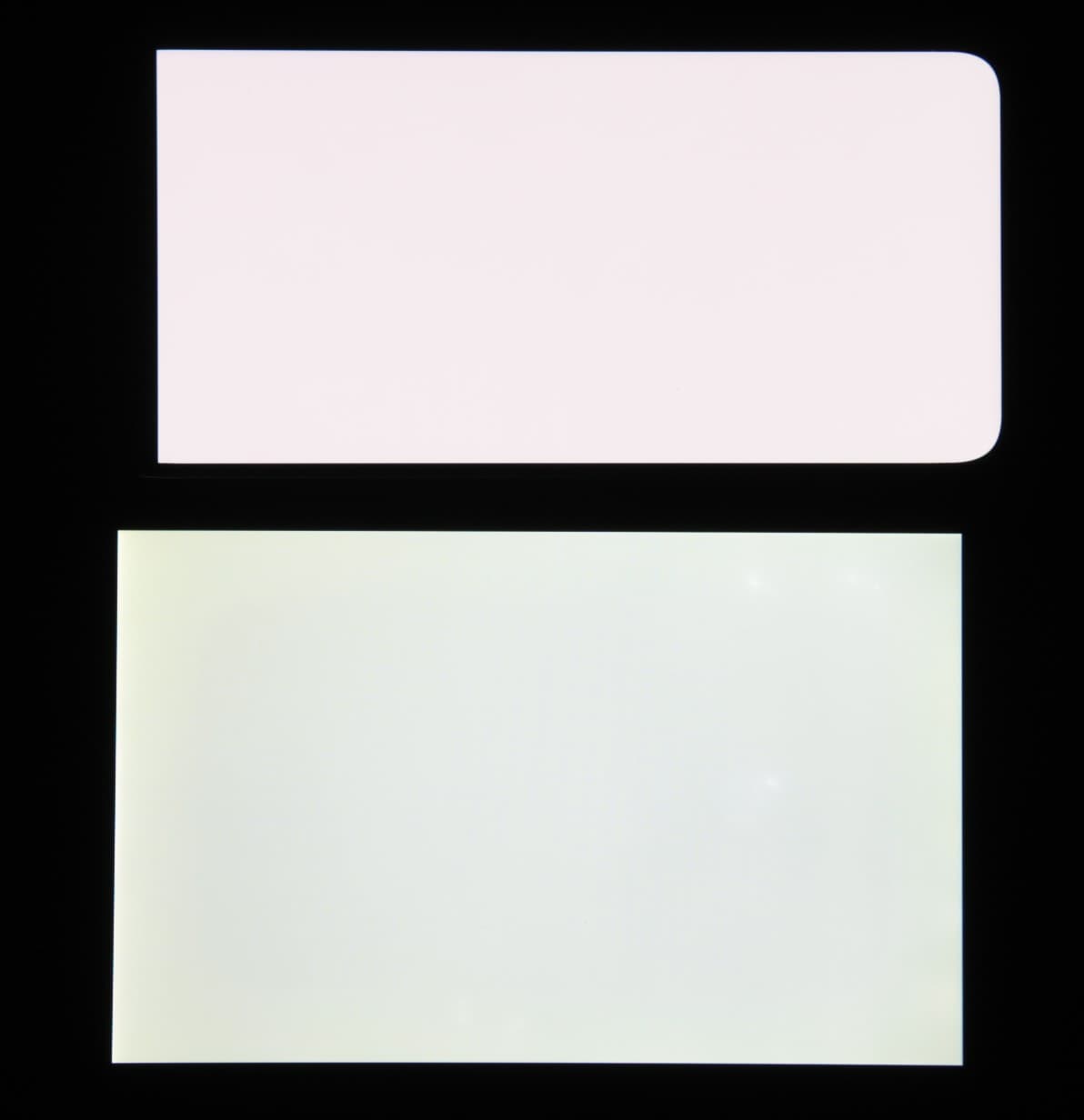 Экран характеризуется великолепными углами обзора. Яркость под углом у обоих экранов заметно уменьшается (если сравнивать с Nexus 7), но в случае смартфона падение яркости выражено гораздо меньше. В итоге, даже если установить формально одинаковую яркость, то экран этого смартфона визуально выглядит гораздо более ярким (в сравнении с ЖК-экранами), так как на экран мобильного устройства часто приходится смотреть как минимум под небольшим углом. Правда, у смартфона белый цвет при отклонении на большие углы приобретает легкий сине-зеленый оттенок, но черный цвет остается просто черным под любыми углами. Он настолько черный, что параметр контрастности в данном случае неприменим. Для сравнения приведем фотографии, на которых на экраны смартфона и второго участника сравнения выведены одинаковые изображения, при этом яркость экранов изначально установлена примерно на 200 кд/м², а цветовой баланс на фотоаппарате принудительно переключен на 6500 К.