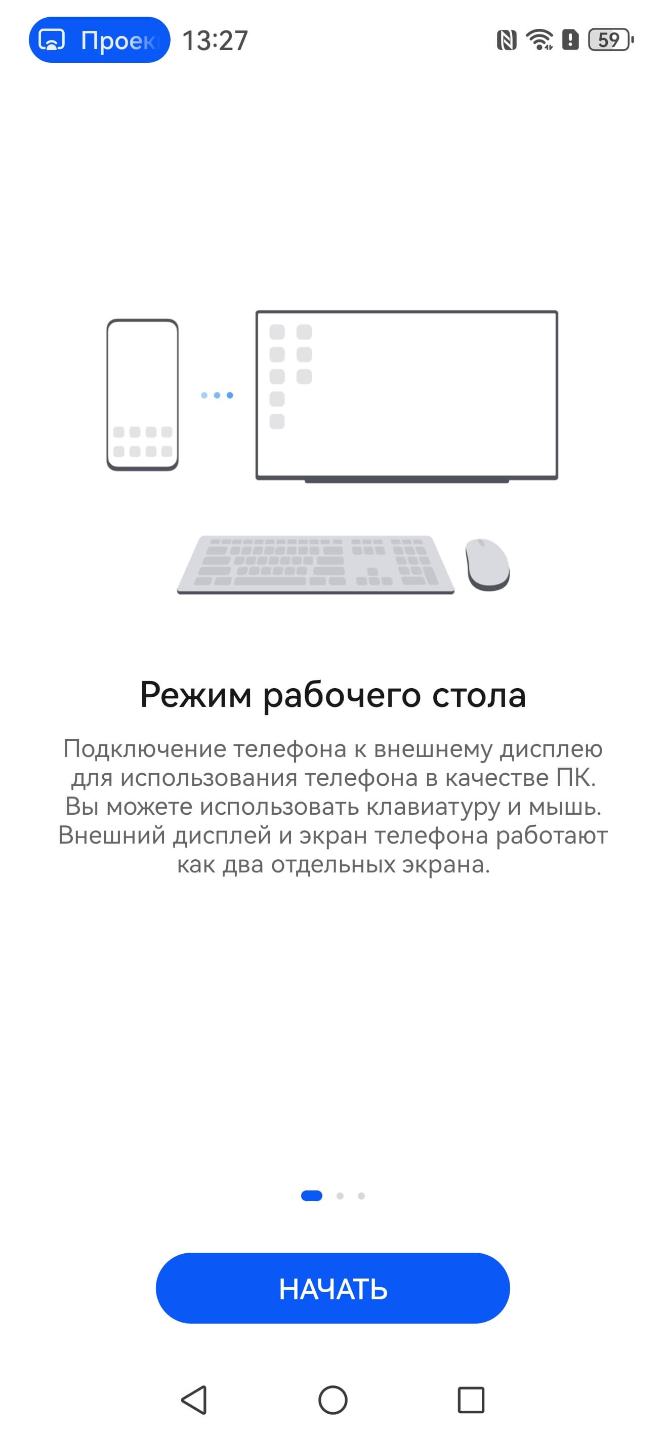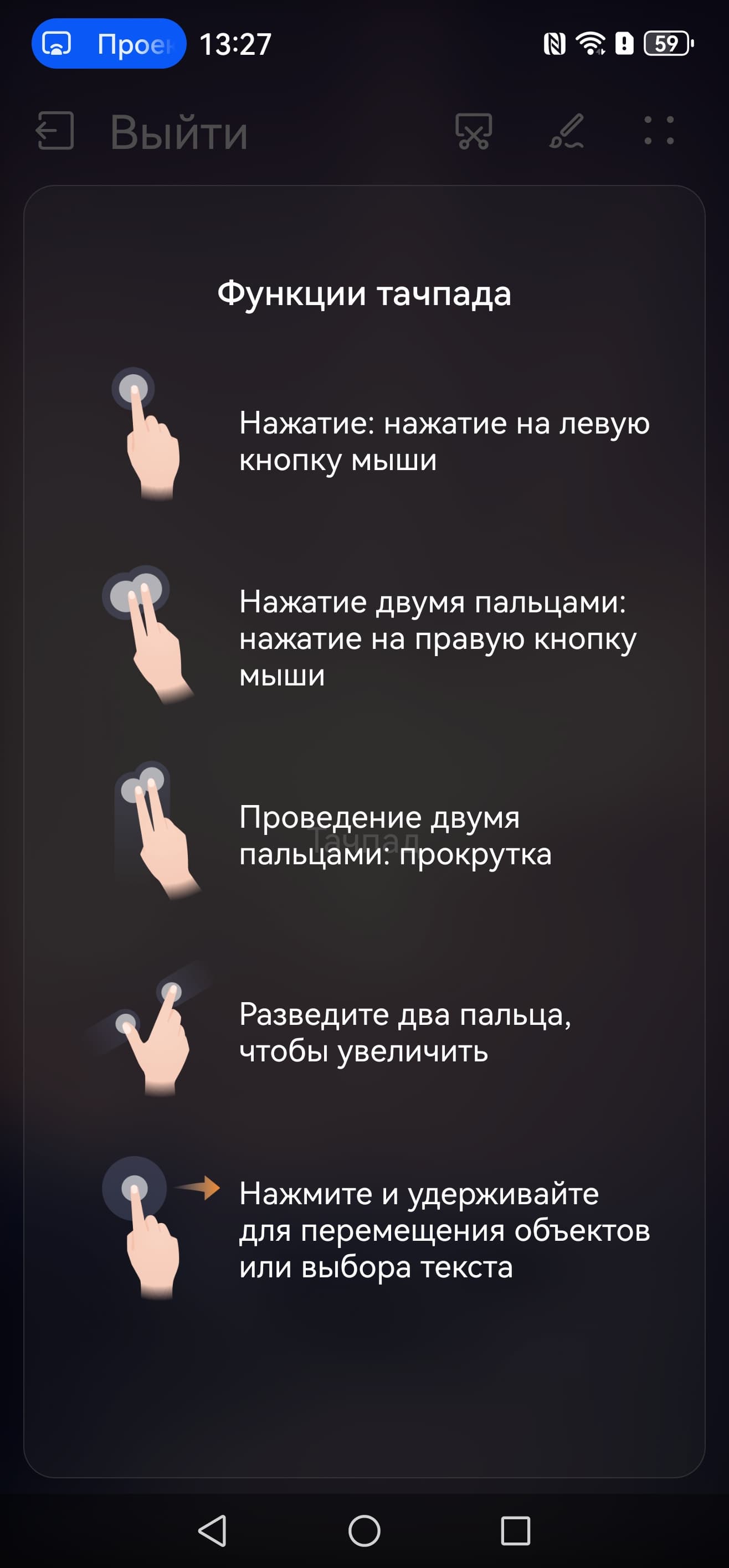 В режиме альтернативного рабочего стола на монитор выводится совершенно другой основной экран, а экран смартфона может использоваться в качестве сенсорной панели координатного ввода: