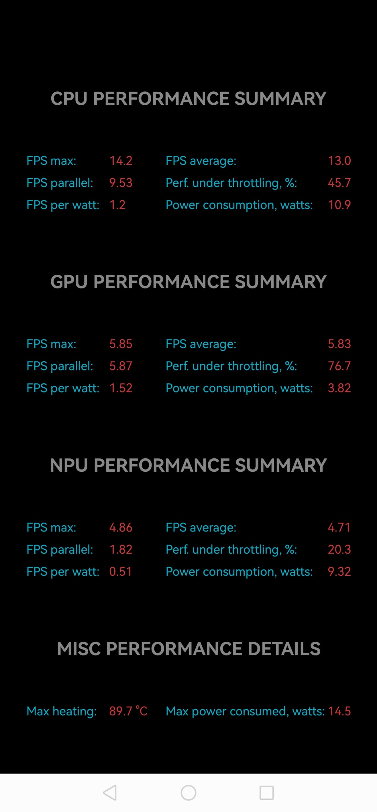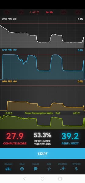 Тест на снижение производительности при нагреве мы проводим с помощью программы Burnout Benchmark, которая позволяет нагружать CPU, GPU и NPU: