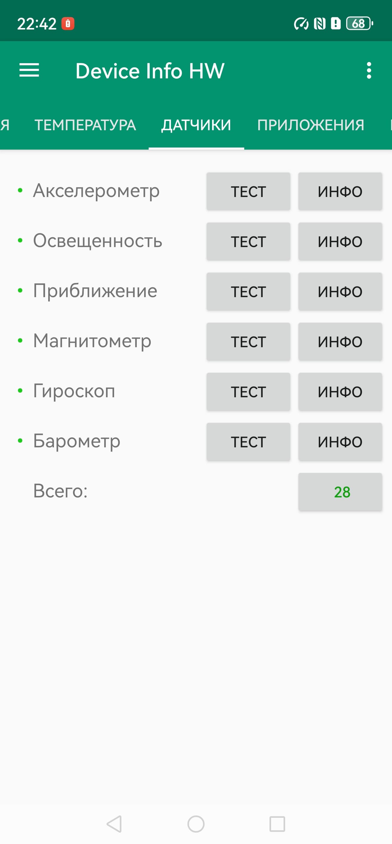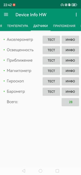 - Датчики приближения и освещения, магнитного поля, акселерометр, гироскоп, барометр