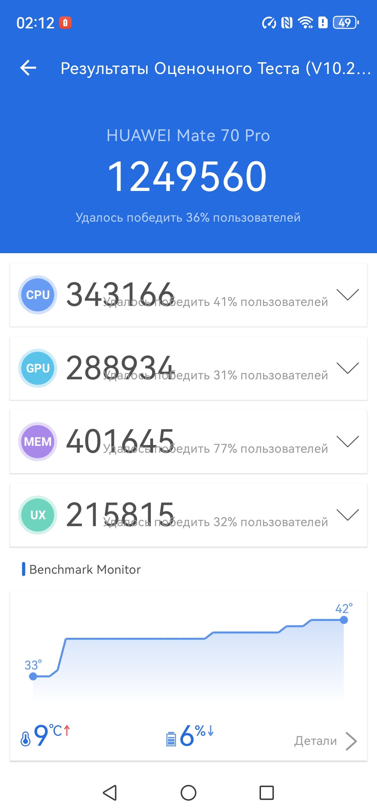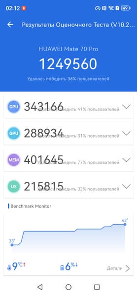 Платформа совсем свежая (анонсирована в ноябре 2024 года), изготовляется по 5-нанометровому техпроцессу. Она набирает в AnTuTu около 1,3 млн баллов — это очень высокий уровень, субфлагманский. Догнать самые мощные флагманские решения конкурентов (которые уже заметно превосходят планку в 2 млн баллов в AnTuTu) не получилось, но для Huawei это важный шаг вперед, раньше компания откровенно проигрывала по производительности своих смартфонов, будучи лишена доступа к топовым платформам и обречена на использование собственных SoC. В любом случае, такой производительности за глаза хватает для выполнения абсолютно любых задач и для плавной работы интерфейса, записи видео в 4К@60 fps и даже для требовательных современных игр.