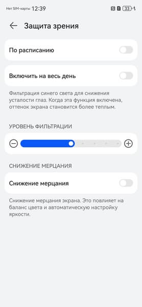 Разумеется есть функция снижения интенсивности синей компоненты. В принципе, яркий свет может приводить к нарушению суточного (циркадного) ритма (см. статью про iPad Pro с дисплеем 9,7 дюйма), но все решается снижением яркости до низкого, но еще комфортного уровня, а искажать цветовой баланс, уменьшая вклад синего, нет абсолютно никакого смысла.