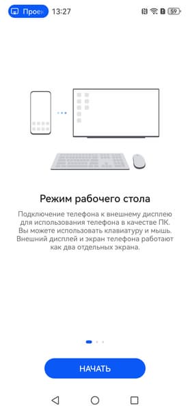 Данный аппарат поддерживает DisplayPort Alt Mode для USB Type-C — вывод изображения и звука на внешнее устройство при подключении к порту USB. (Отчет программы USBTreeView.) При подключении к нашему монитору вывод видео осуществляется в режиме 1080p при 60 Гц кадровой частоты. Режимов работы два: вывод альтернативного рабочего стола (Режим рабочего стола) или простое копирование экрана смартфона.
