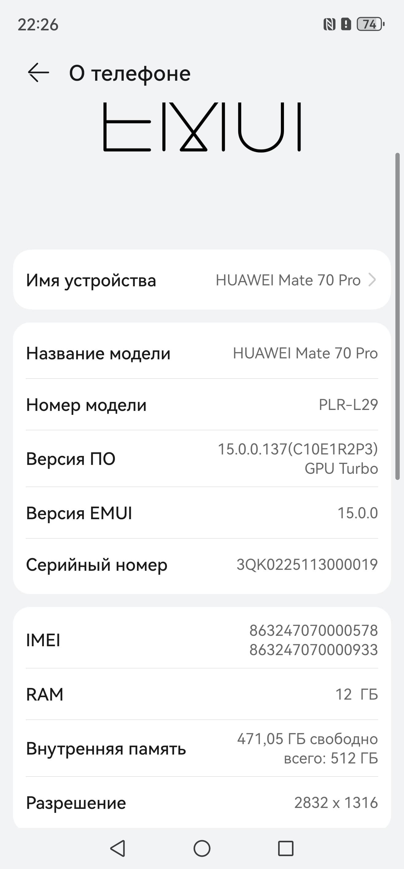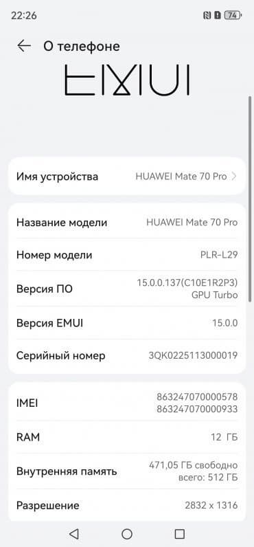 В качестве программной платформы в Huawei Mate 70 Pro используется ОС Android с собственной оболочкой EMUI. Интерфейс многолетний, хорошо оптимизированный, лаконично организованный, плавный и быстрый.