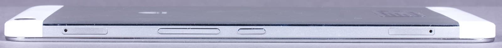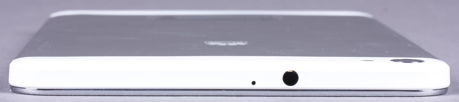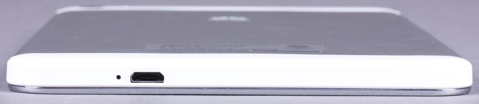 На верхней грани планшета находится разъем 3,5 мм для наушников, на нижней — разъем Micro-USB. Они смещены чуть в сторону от центра. Рядом с каждым из этих разъемов находится маленькое отверстие; по всей видимости, это микрофоны (по крайней мере, внизу).