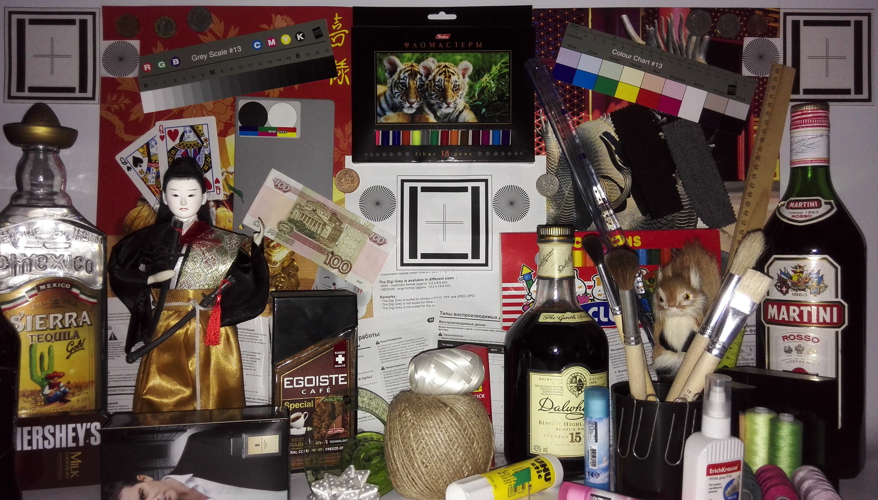 Еще одной возможностью изменить изображение является опция Яркие цвета. При ее включении гамма-кривая приобретает слегка выраженный S-образный характер, а насыщенность цветов (вернее цветовой контраст) заметно повышается (без изменения охвата, но с исчезновением градаций в области насыщенных цветов). Фотография ниже показывает тестовое изображение после такой коррекции в сравнении все с тем же Google Nexus 7 (2013):