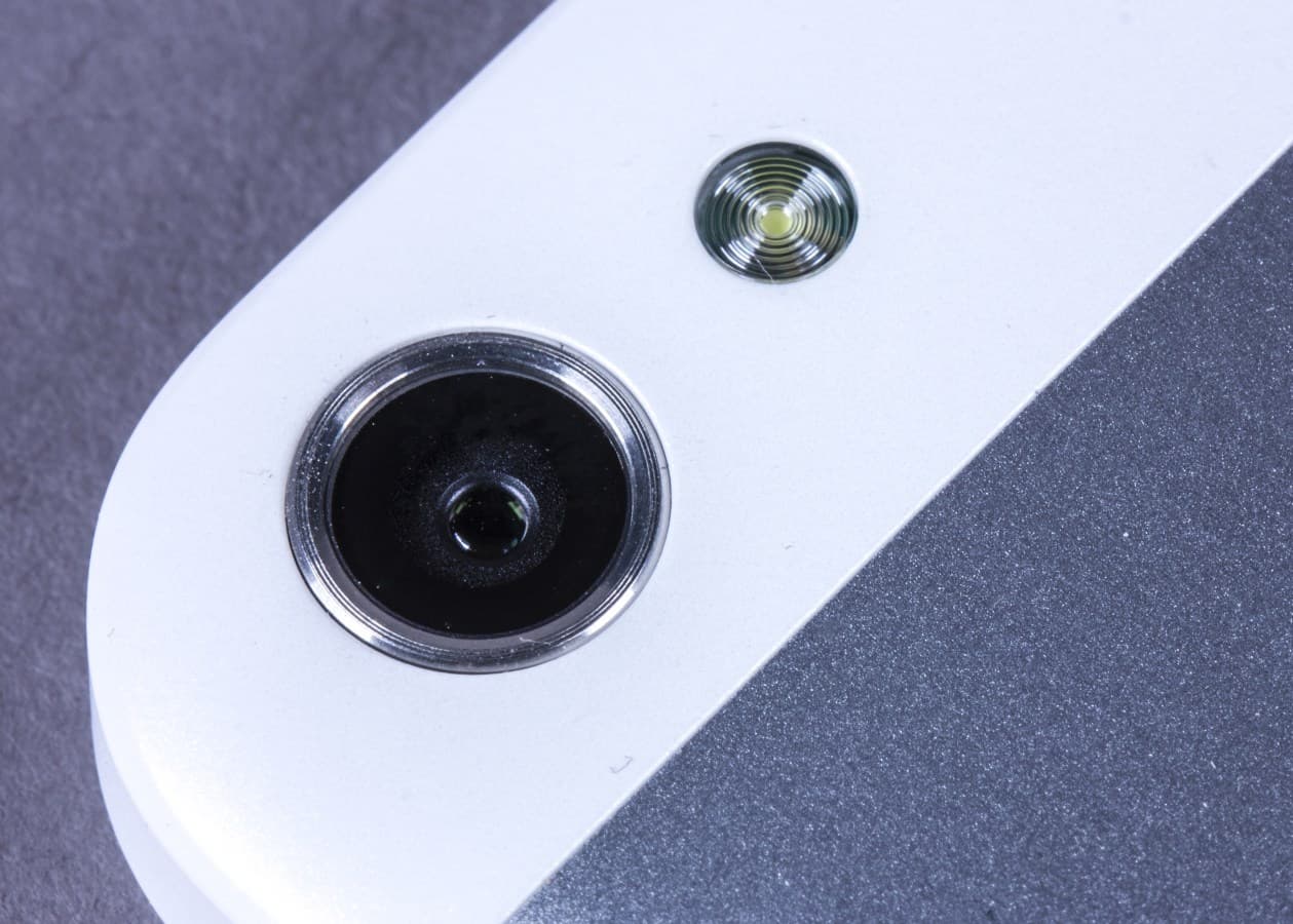 Центральная часть тыловой панели изготовлена из металла. С двух сторон ее обрамляют белые пластиковые вставки, примерно так же, как в iPhone. Верхняя содержит объектив камеры и вспышку, а в углу нижней находится тыловой динамик. Не слишком удачное решение. Однако на столе тыловой динамик не приглушается, обеспечивая довольно высокий уровень громкости и хорошее качество звука.