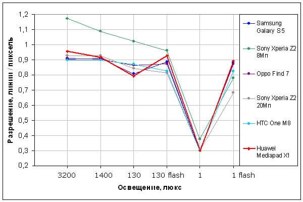 Оба экрана примерно одинаково темные — яркость по фотографии у Huawei Mediapad X1 7.0 равна 85 против 86 у Nexus 7. Утроение отраженных объектов в экране Mediapad X1 очень слабое, это свидетельствует о том, что между внешним стеклом (оно же сенсор прикосновений) и поверхностью матрицы нет воздушного промежутка (экран типа OGS — One Glass Solution). За счет меньшего числа границ с сильно различающимися коэффициентами преломления (типа стекло-воздух) такие экраны лучше смотрятся в условиях сильной внешней засветки, но вот их ремонт в случае потрескавшегося внешнего стекла обходится гораздо дороже, так как менять приходится экран целиком. На внешней поверхности экрана есть специальное олеофобное (жироотталкивающее) покрытие (очень эффективное, не хуже, чем у Nexus 7), поэтому следы от пальцев удаляются существенно легче, а появляются с меньшей скоростью, чем в случае обычного стекла.