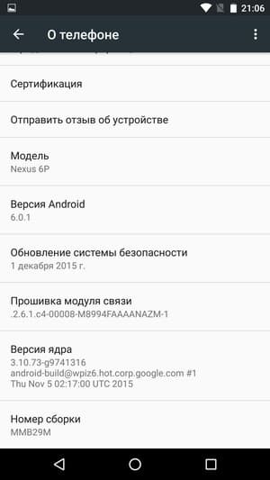 Остальные элементы на корпусе Nexus 6P размещены привычно и знакомо. Здесь нет инфракрасного передатчика для эмуляции пультов ДУ, нет датчиков сердечного ритма и тому подобного. Из «излишеств» в аппарате имеется лишь сканер отпечатков пальцев, а тот становится уже настолько привычным атрибутом современного топового смартфона, что Google включила официальную поддержку этого элемента в интерфейс своей новой версии ОС Android 6.0 Marshmallow. В данном смартфоне реализация поддержки называется Nexus Imprint, с помощью сканера можно не только разблокировать телефон, но и подтверждать покупки при бесконтактной оплате Android Pay и запускать приложения с идентификацией по отпечатку пальца. Сам сканер работает четко и без сбоев, для внесения в память отпечатка палец требуется приложить всего шесть раз, а при разблокировке после этого палец можно подносить под любым углом.