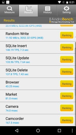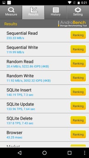 | Huawei Nexus 6P (Qualcomm Snapdragon 810) | LG Nexus 5X (Qualcomm Snapdragon 808) | Meizu Pro 5 (Exynos 7420) | Huawei Mate S (HiSilicon Kirin 935) | LeTV 1s (Mediatek MT6795T) | |