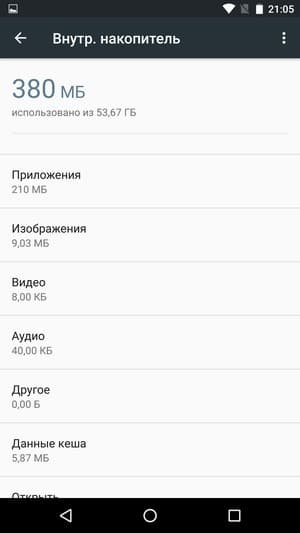 Объем встроенной памяти нельзя увеличить за счет карт microSD, но есть возможность подключения к порту USB внешних флэш-накопителей в режиме OTG. В Nexus 6P используется порт со скоростным интерфейсом USB 2.0 и с разъемом Type С. На практике передача файла размером 4 ГБ с компьютера на смартфон «по проводу» занимает 3 минуты 12 секунд, то есть скорость составляет около 21 МБ/с.