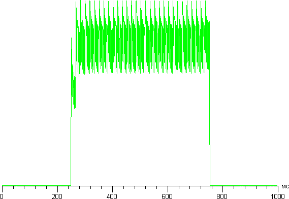 На любом уровне яркости присутствует значимая модуляция с частотой примерно 239 Гц. На рисунке ниже приведены зависимости яркости (вертикальная ось) от времени (горизонтальная ось) для нескольких значений яркости: