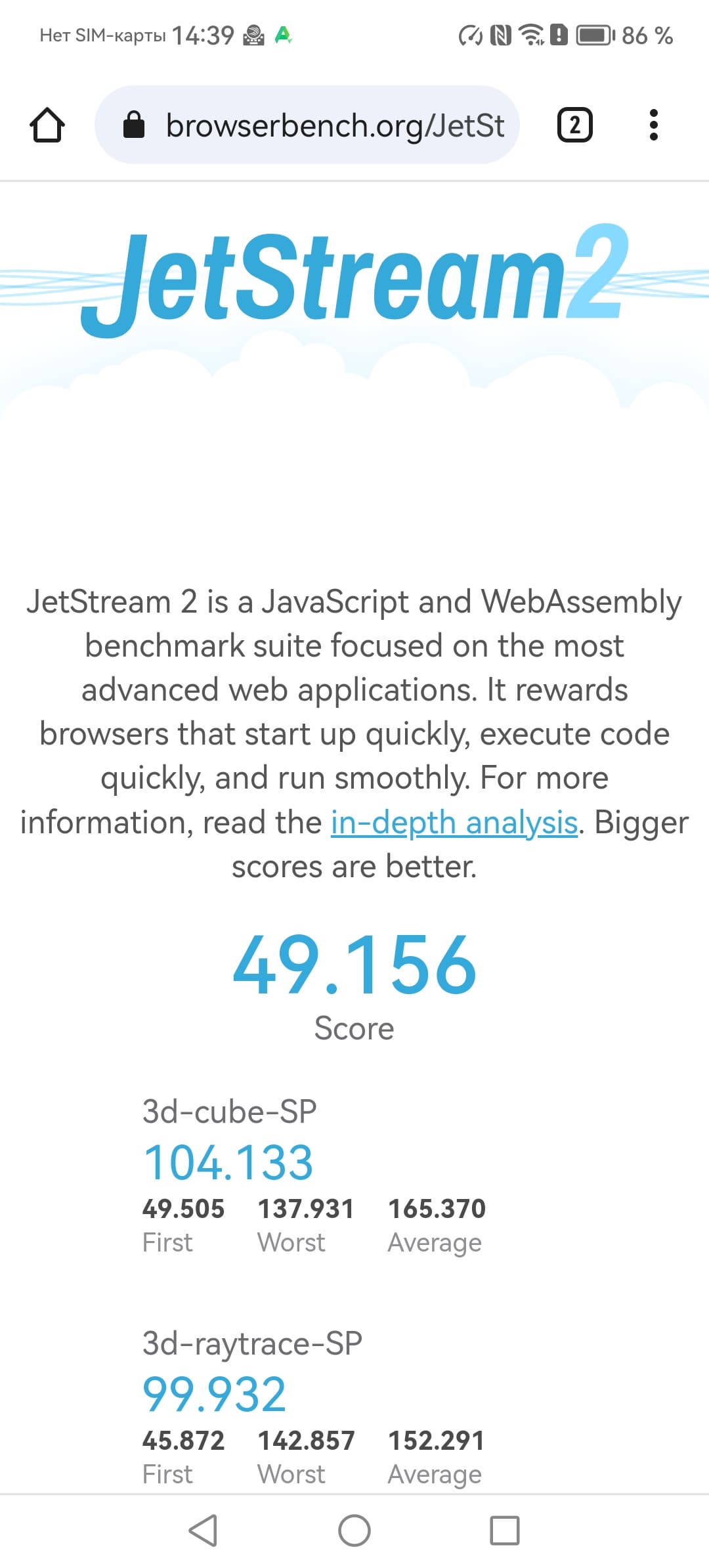 | JetStream (больше — лучше) | 49 | 72 | 60 | 87 | 73 |