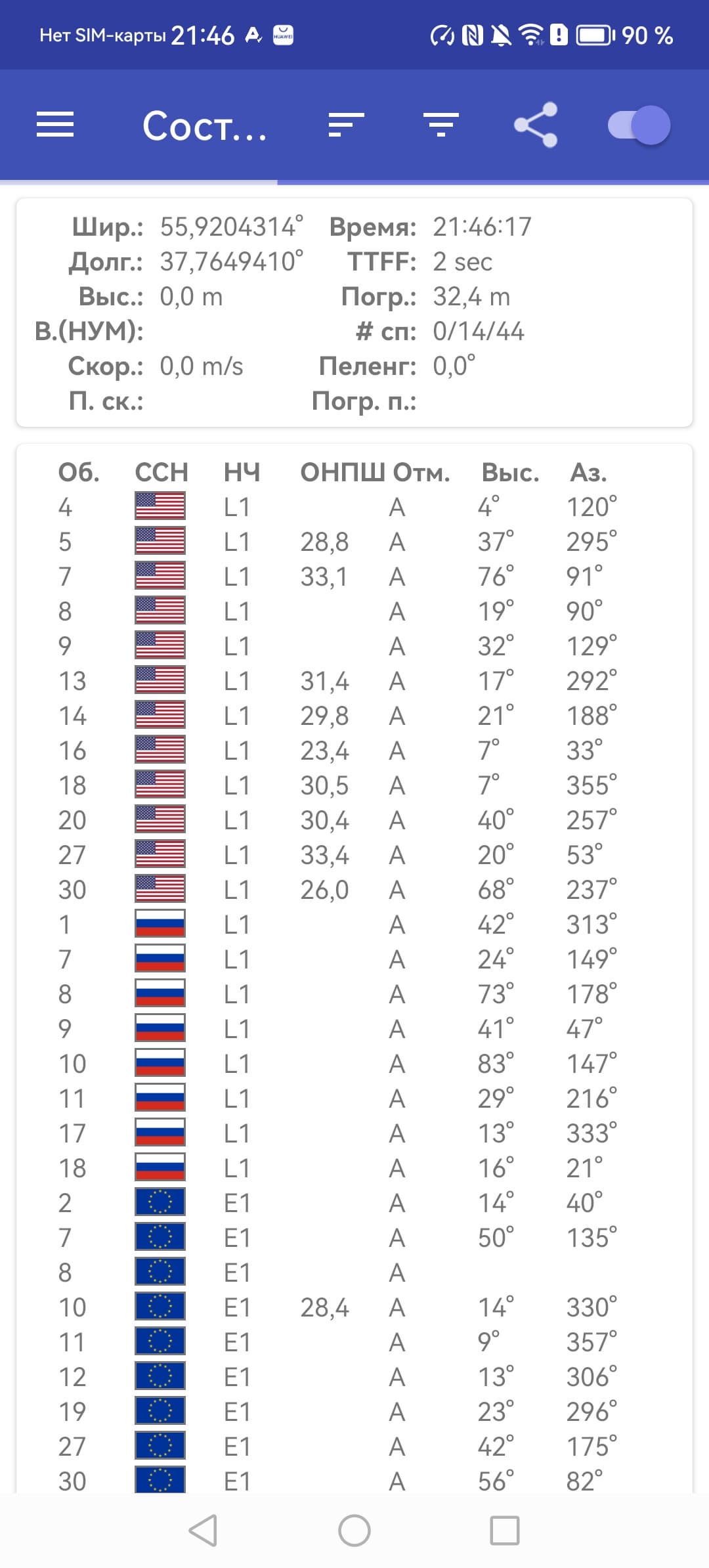 - GPS, Глонасс, Galileo, BDS, QZSS