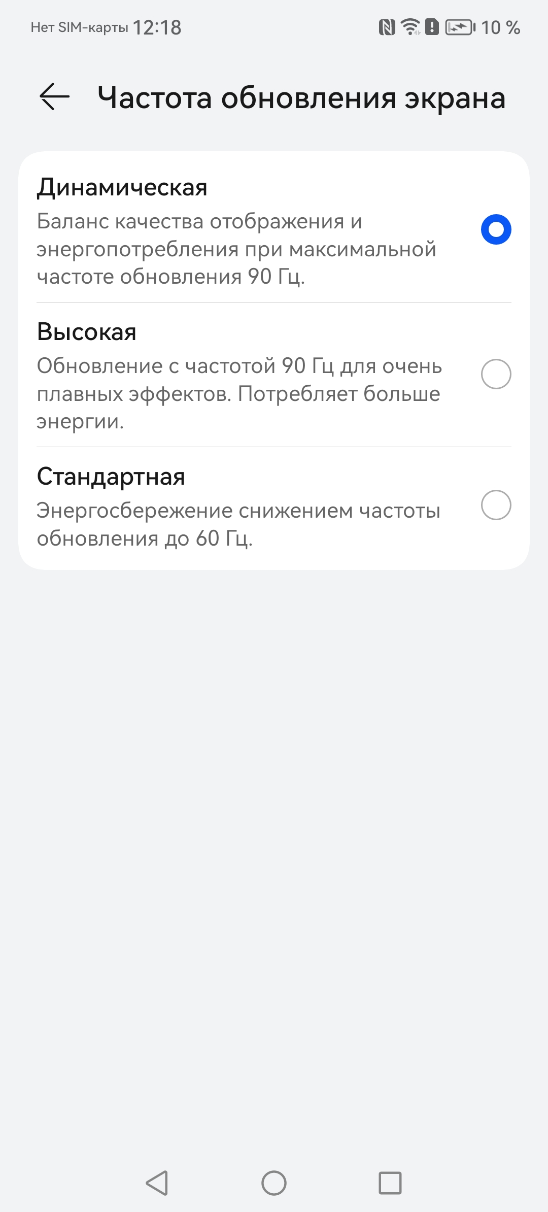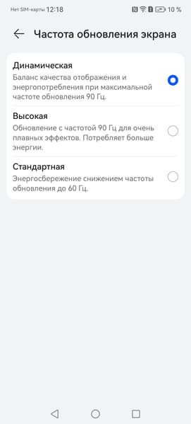 В настройках экрана можно включить режим с повышенной до 90 Гц частотой обновления, притом в режиме Динамическая нам обещают автоматический выбор частоты: