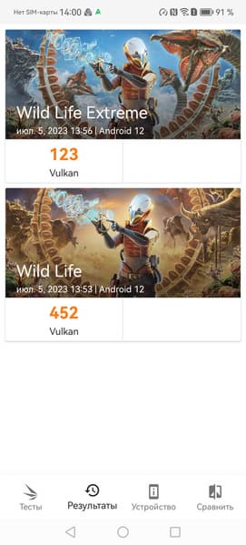 | 3DMark Wild Life Vulkan (больше — лучше) | 452 | 1252 | 4505 | 4186 | 2450 |