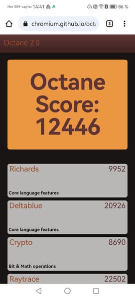 | Google Octane 2 (больше — лучше) | 12446 | 22823 | 27796 | 29329 | 27070 |