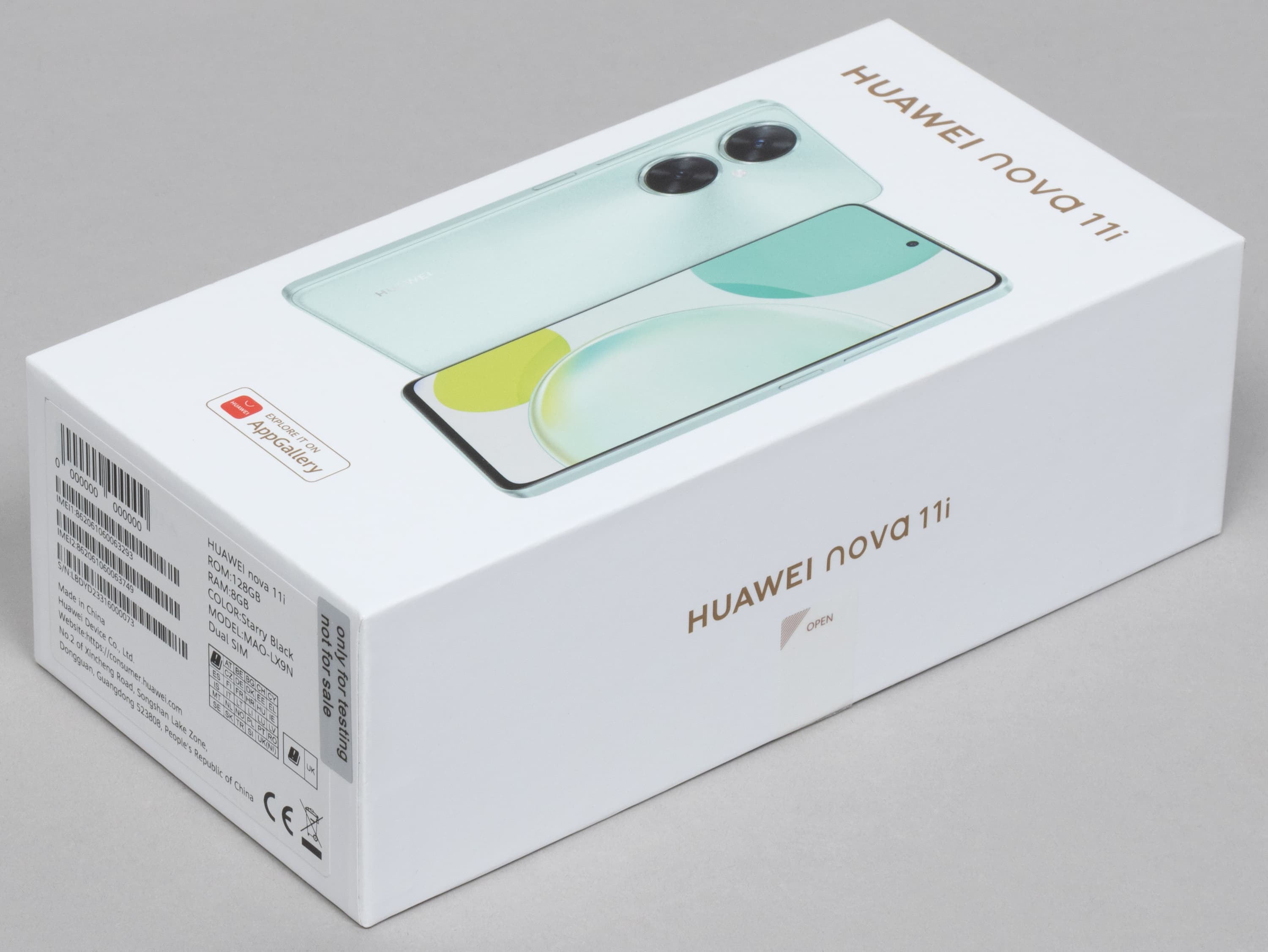 Смартфон Huawei nova 11i поставляется в картонной коробке с простым привычным оформлением без особых изысков.