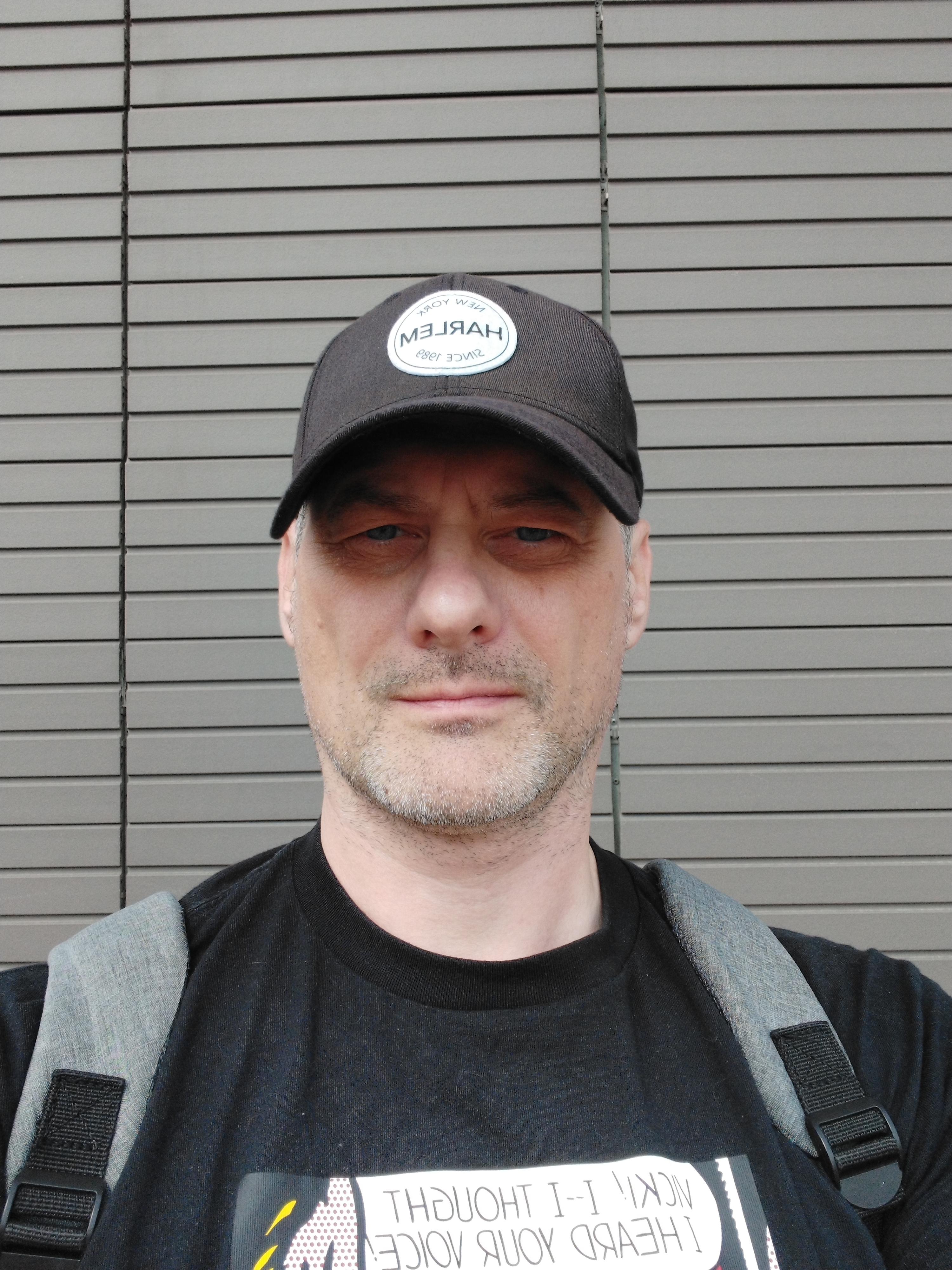 Фронтальная камера с характеристиками 16 Мп, f/2,2 даже днем снимает рыхловато. Детализация не очень высокая, картинка блеклая, без сочности и объема. Качество базовое. Можно снимать в одном из двух вариантов, с углом обзора пошире или с лицом чуть крупнее, но разница не так уж велика.