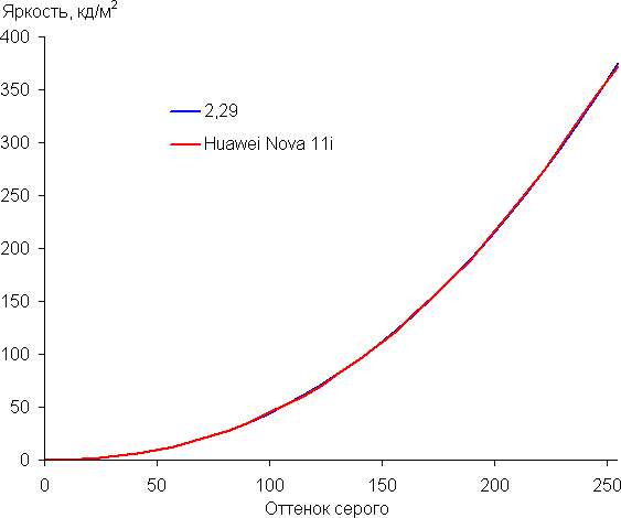 Контрастность (примерно в центре экрана) высокая — порядка 1100:1. Время отклика при переходе черный-белый-черный равно 15 мс (7 мс вкл. + 8 мс выкл.). Переход между полутонами серого 25% и 75% (по численному значению цвета) и обратно в сумме занимает 27 мс. Построенная по 32 точкам с равным интервалом по численному значению оттенка серого гамма-кривая не выявила завала ни в светах, ни в тенях. Показатель аппроксимирующей степенной функции равен 2,29, что немного выше стандартного значения 2,2, поэтому картинка чуть затемнена. При этом реальная гамма-кривая мало отклоняется от степенной зависимости: