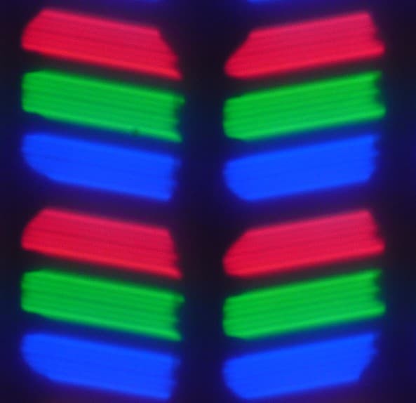 В данном смартфоне используется матрица типа IPS. Микрофотографии демонстрируют типичную для IPS структуру субпикселей: