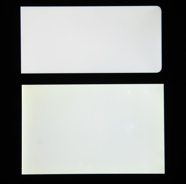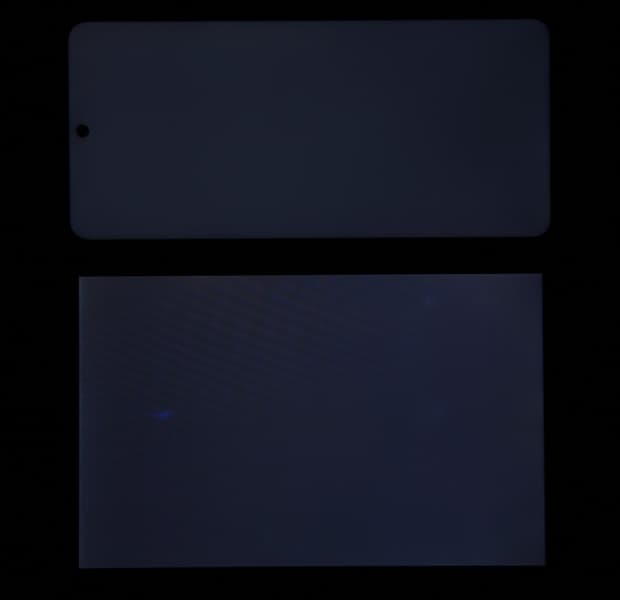 Экран смартфона имеет хорошие углы обзора без значительного сдвига цветов даже при больших отклонениях взгляда от перпендикуляра к экрану и без инвертирования оттенков. Черное поле при отклонении по диагонали высветляется сильно, но остается условно нейтрально-серым (так видно глазами).