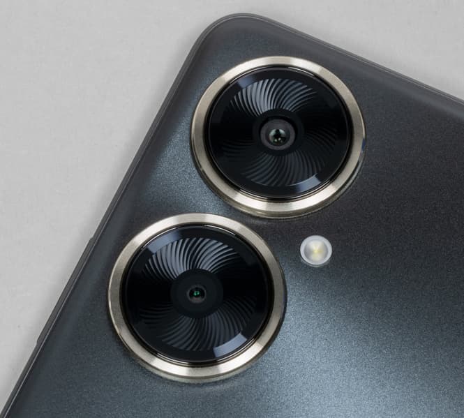 Хорошо оформлены и камеры сзади. Правда, второй глазок — простая 2-мегапиксельная «заглушка», а для нее сделали такого же диаметра бутафорское круглое стекло, как для основной камеры. Но зато всё симметрично и стильно. Ободки вокруг камер могут быть разного цвета в зависимости от цвета корпуса.