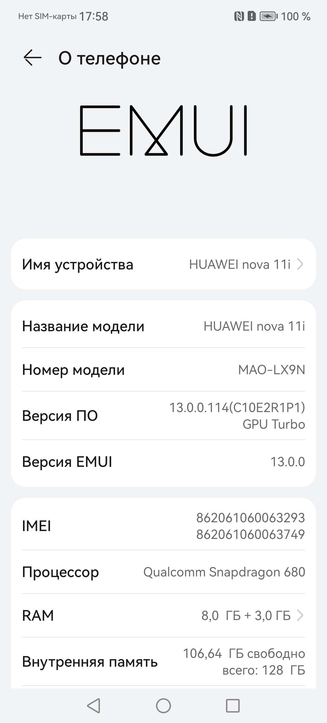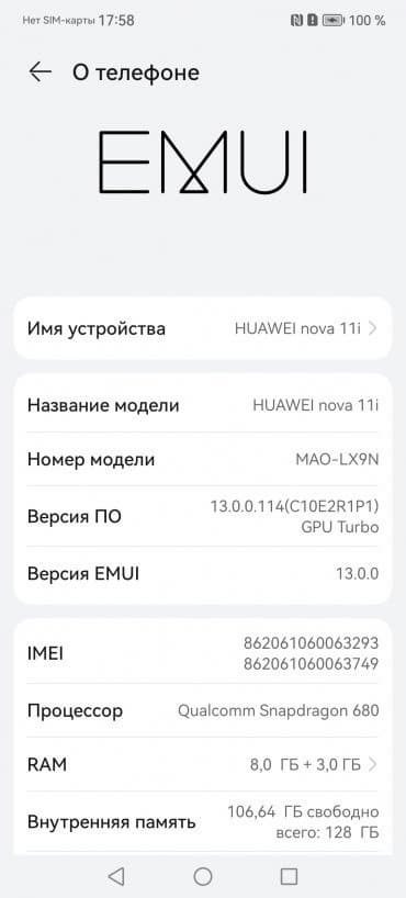 Основные характеристики Huawei nova 11i (модель MAO-LX9)