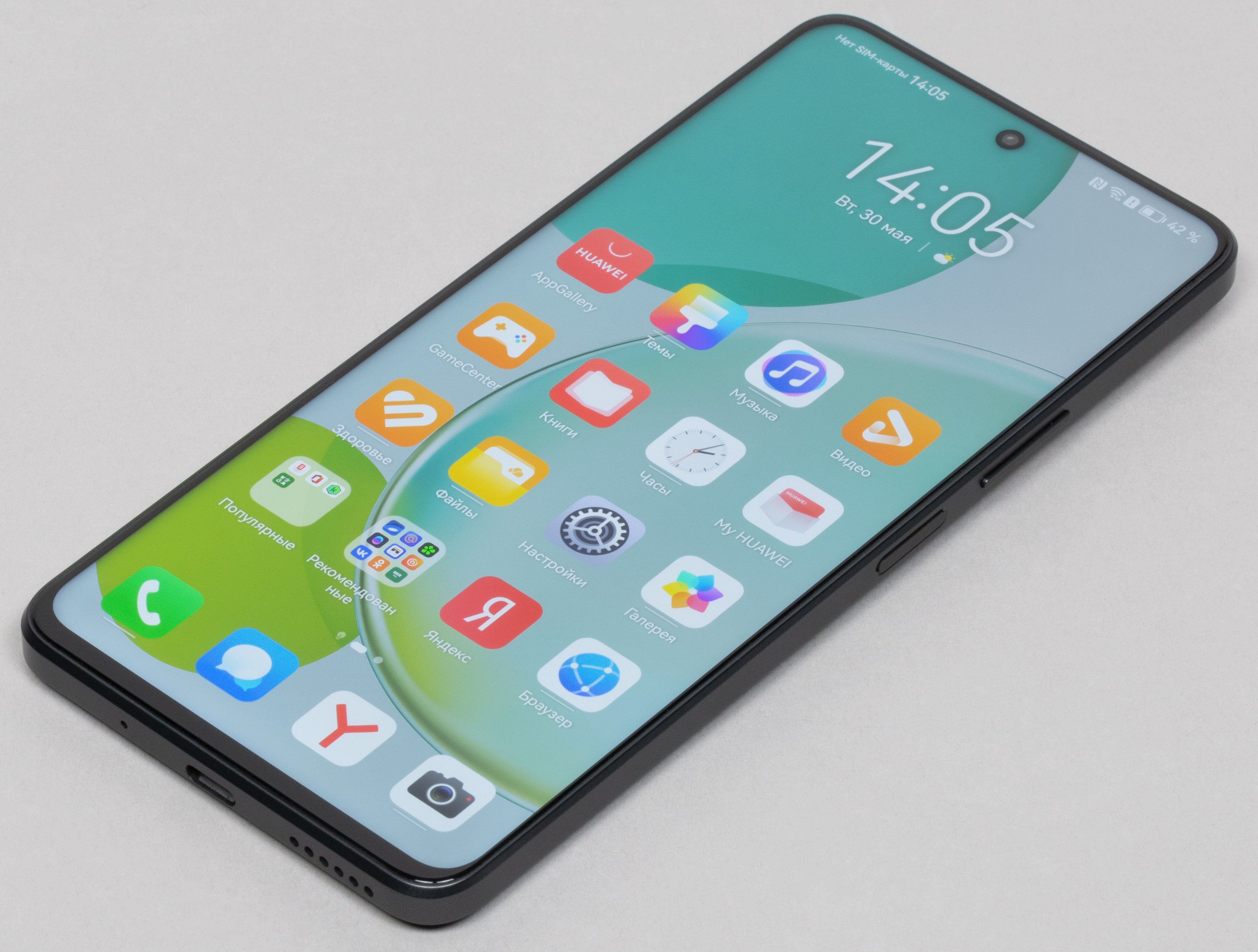 Huawei nova 11i выполнен в простом и в то же время практичном дизайне без закругленных боков и покатых стекол. За широкие плоские бока рамки смартфон прочно удерживается в руке, а со стола его удобно поднимать за счет небольших скосов на задней панели. В целом, форма максимально удобная и практичная. Это не тот вариант, когда удобство приносится в жертву красоте — скорее, наоборот.