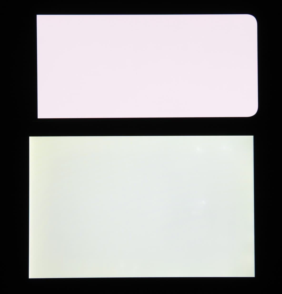 Экран характеризуется великолепными углами обзора. Яркость под углом у обоих экранов заметно уменьшается (если сравнивать с Nexus 7), но в случае смартфона падение яркости выражено гораздо меньше. В итоге, даже если установить формально одинаковую яркость, то экран этого смартфона визуально выглядит гораздо более ярким (в сравнении с ЖК-экранами), так как на экран мобильного устройства часто приходится смотреть как минимум под небольшим углом. Правда, у смартфона белый цвет при отклонении на большие углы приобретает легкий сине-зеленый оттенок, но черный цвет остается просто черным под любыми углами. Он настолько черный, что параметр контрастности в данном случае неприменим. Для сравнения приведем фотографии, на которых на экраны смартфона и второго участника сравнения выведены одинаковые изображения, при этом яркость экранов изначально установлена примерно на 200 кд/м², а цветовой баланс на фотоаппарате принудительно переключен на 6500 К.
