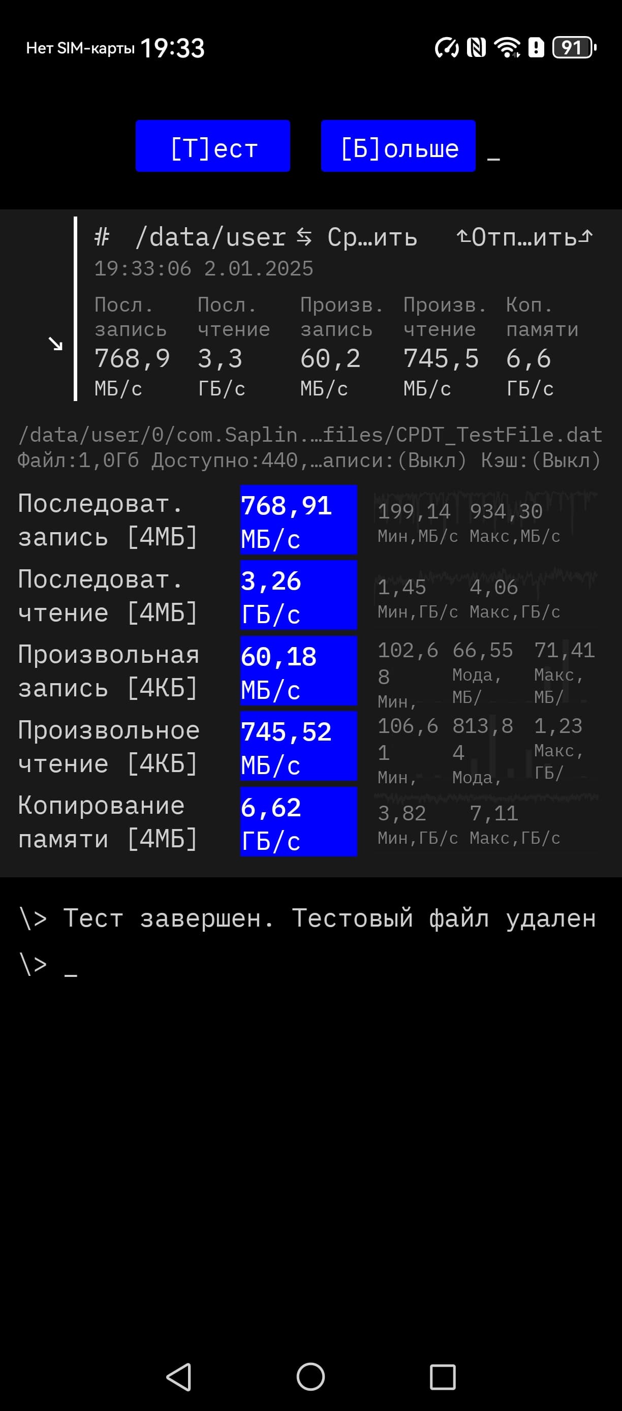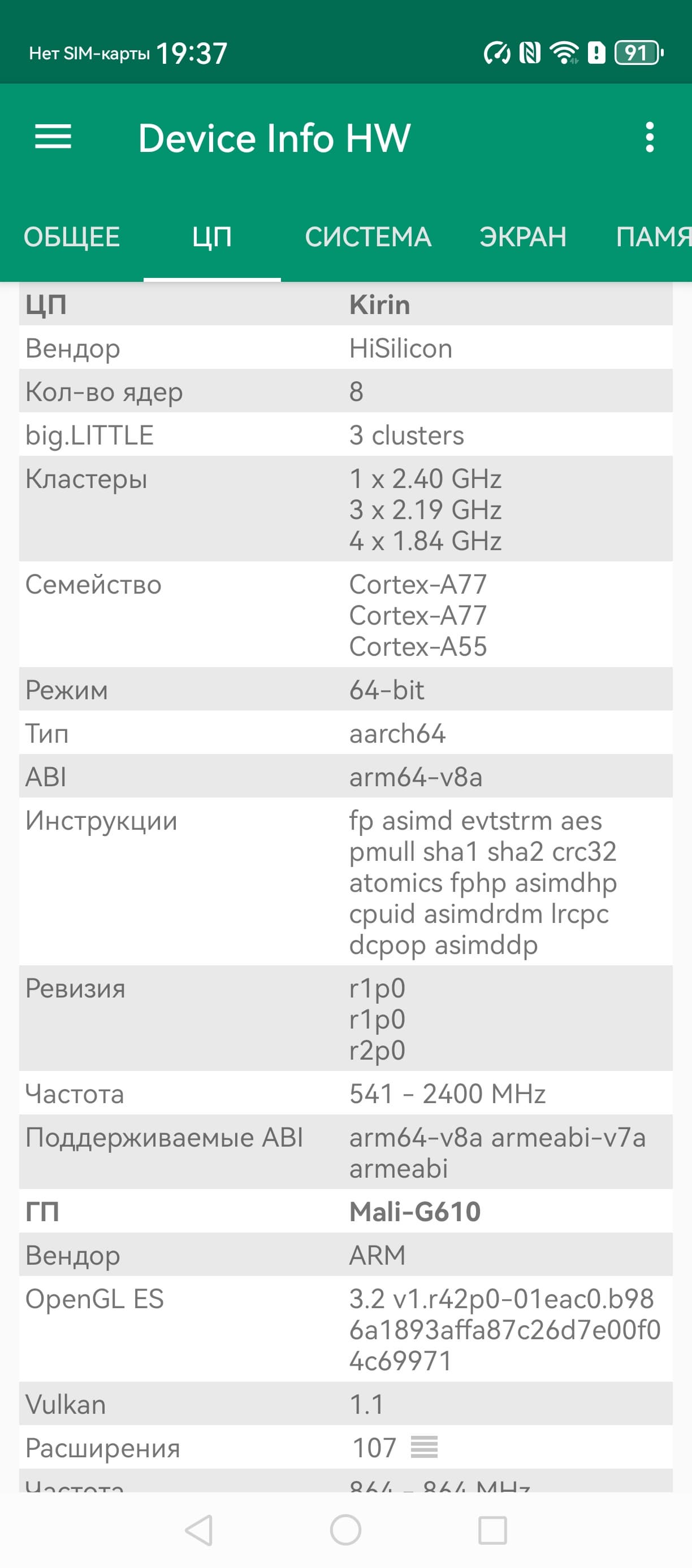 | AnTuTu (v10.x) (больше — лучше) | 626746 | 730514 | 620852 | 1297546 | 792657 |