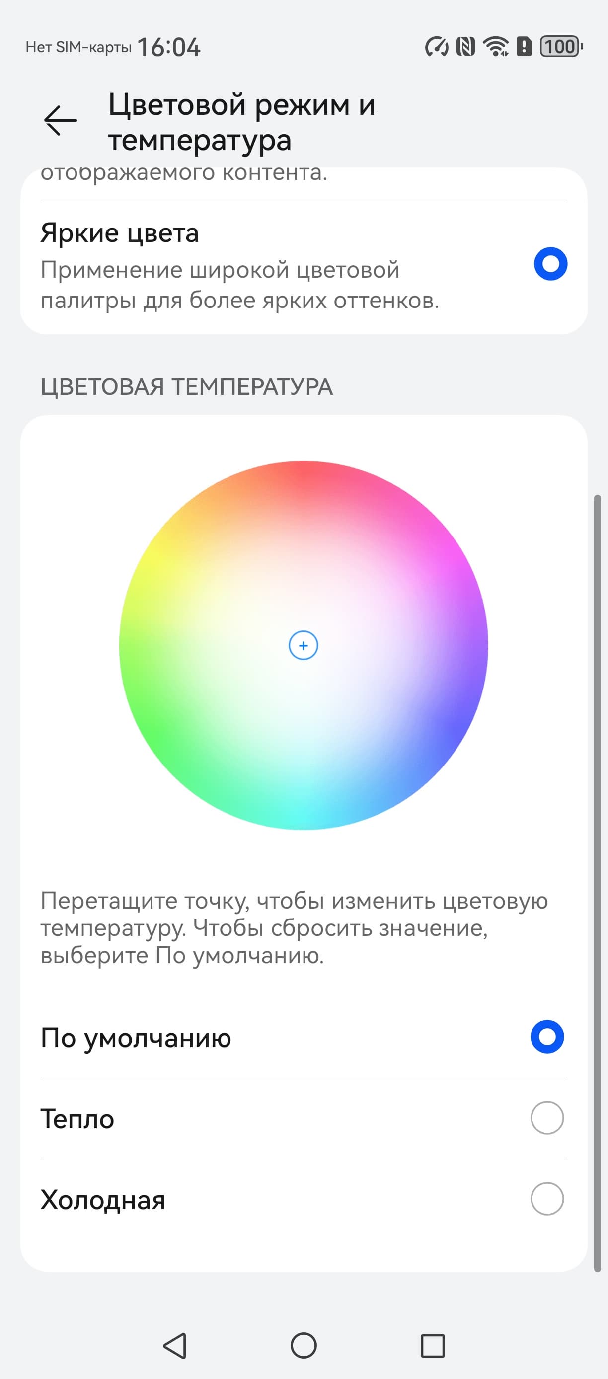 В этом устройстве есть возможность скорректировать цветовой баланс с помощью выбора профиля цветовой температуры или регулировки оттенка на цветовом круге.