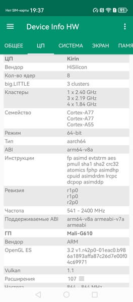 Платформа совсем свежая, изготовляется по 7-нанометровому техпроцессу, но это SoC в лучшем случае среднего уровня, она набирает в AnTuTu немногим более 600 тысяч баллов. Такой производительности смартфону вполне хватает для выполнения любых задач и для плавной работы интерфейса, и даже в игры можно поиграть, пусть и не на самых высоких настойках графики. Однако съемку видео в 4К@60 fps этот смартфон, видимо, не тянет.
