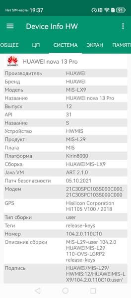 Основные характеристики Huawei nova 13 Pro (модель MIS-LX9)