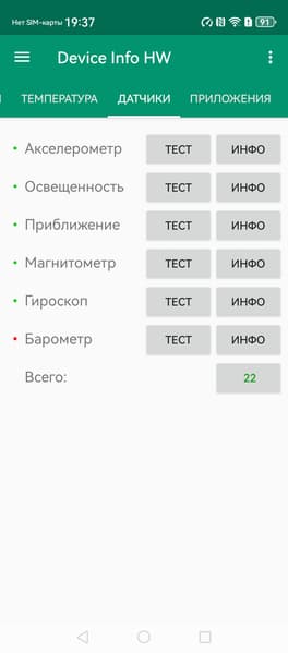 - Датчики приближения и освещения, магнитного поля, акселерометр, гироскоп