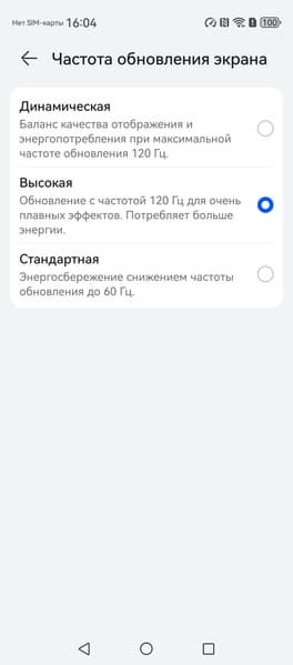 В настройках экрана можно включить режим с повышенной до 120 Гц частотой обновления: