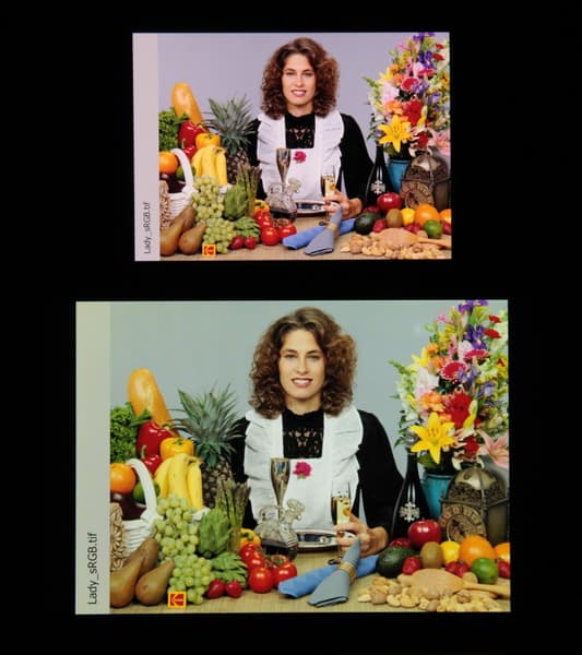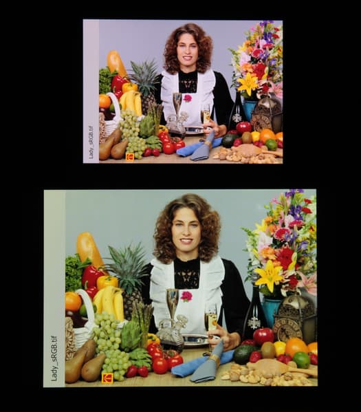 Отметим, что на экранах с уширенным цветовым охватом (без соответствующей коррекции) цвета́ обычных изображений, оптимизированных для устройств sRGB, выглядят неестественно насыщенными. Отсюда и рекомендация: в большинстве случаев смотреть кино, фотографии и все естественное лучше при выборе профиля Обычные цвета. При этом, если в изображении прописан отличный от sRGB профиль, то смотреть его лучше с использованием штатной программы Галерея.