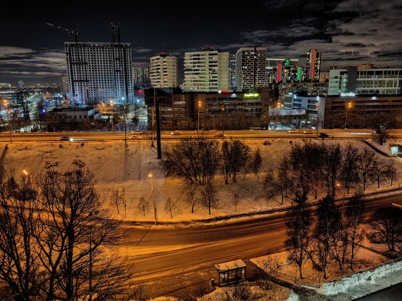 Ночной режим значительно более «темный», чем мы привыкли видеть. Здесь уже заметны и шумы, и артефакты от их подавления, но в целом это не мешает, и если не разглядывать картинку в полный размер, то претензий мало: экспозиция не передержана, картинка смотрится ночной, объемной и четкой.