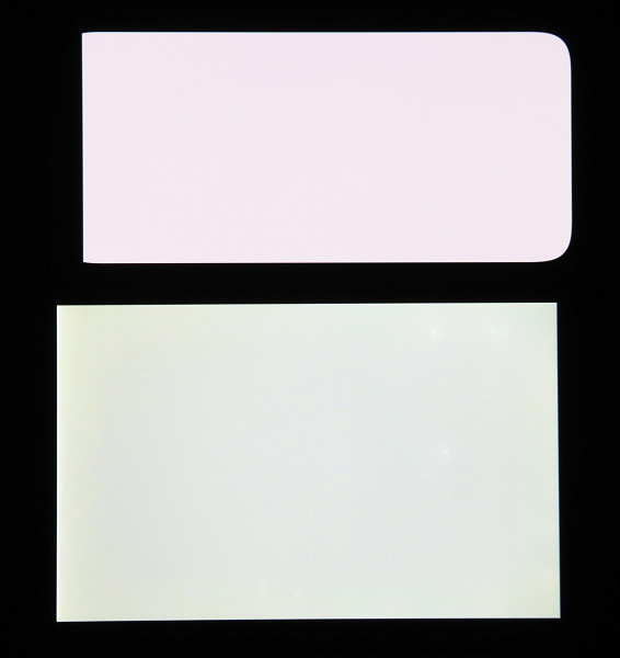 Экран характеризуется великолепными углами обзора. Яркость под углом у обоих экранов заметно уменьшается (если сравнивать с Nexus 7), но в случае смартфона падение яркости выражено гораздо меньше. В итоге, даже если установить формально одинаковую яркость, то экран этого смартфона визуально выглядит гораздо более ярким (в сравнении с ЖК-экранами), так как на экран мобильного устройства часто приходится смотреть как минимум под небольшим углом. Правда, у смартфона белый цвет при отклонении на большие углы приобретает легкий сине-зеленый оттенок, но черный цвет остается просто черным под любыми углами. Он настолько черный, что параметр контрастности в данном случае неприменим. Для сравнения приведем фотографии, на которых на экраны смартфона и второго участника сравнения выведены одинаковые изображения, при этом яркость экранов изначально установлена примерно на 200 кд/м², а цветовой баланс на фотоаппарате принудительно переключен на 6500 К.