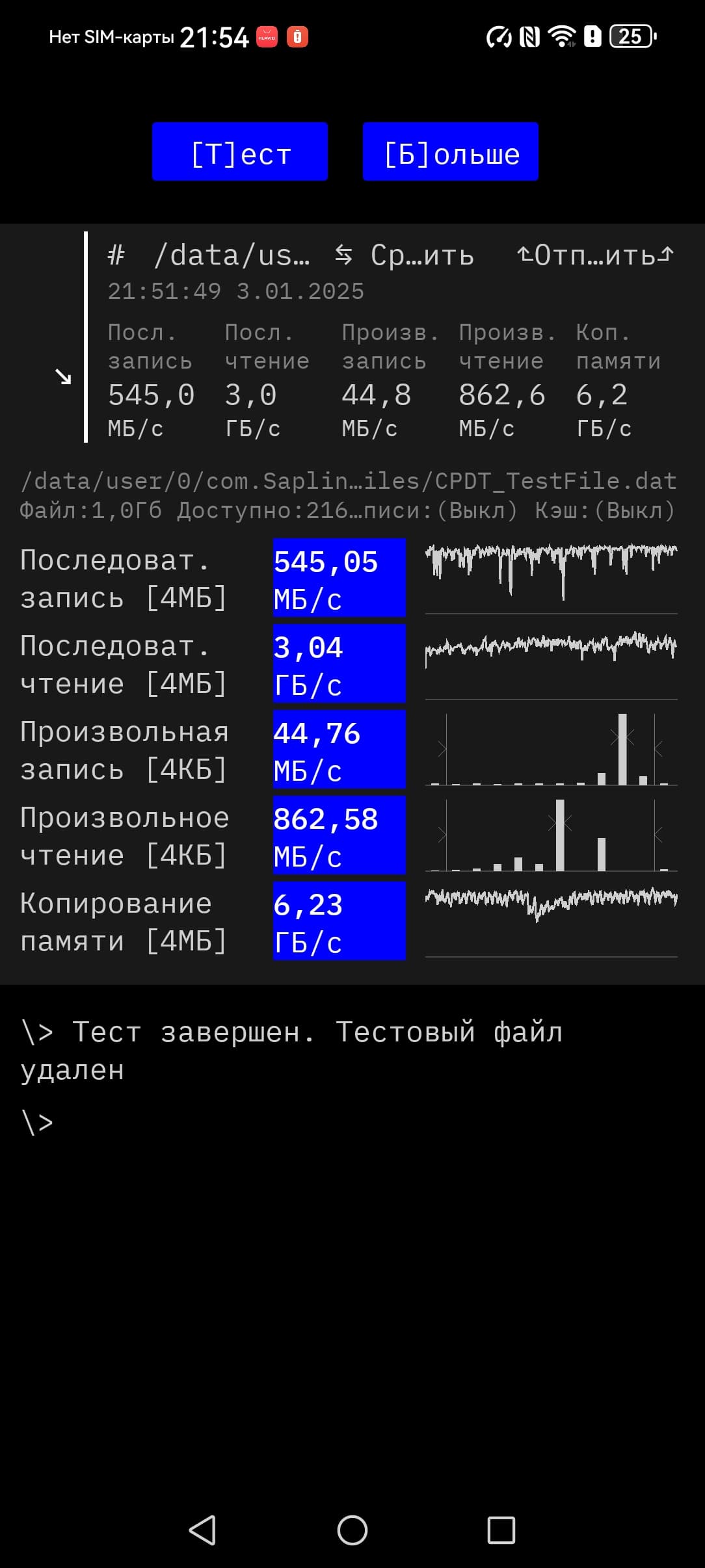 Результаты тестирования скорости памяти: