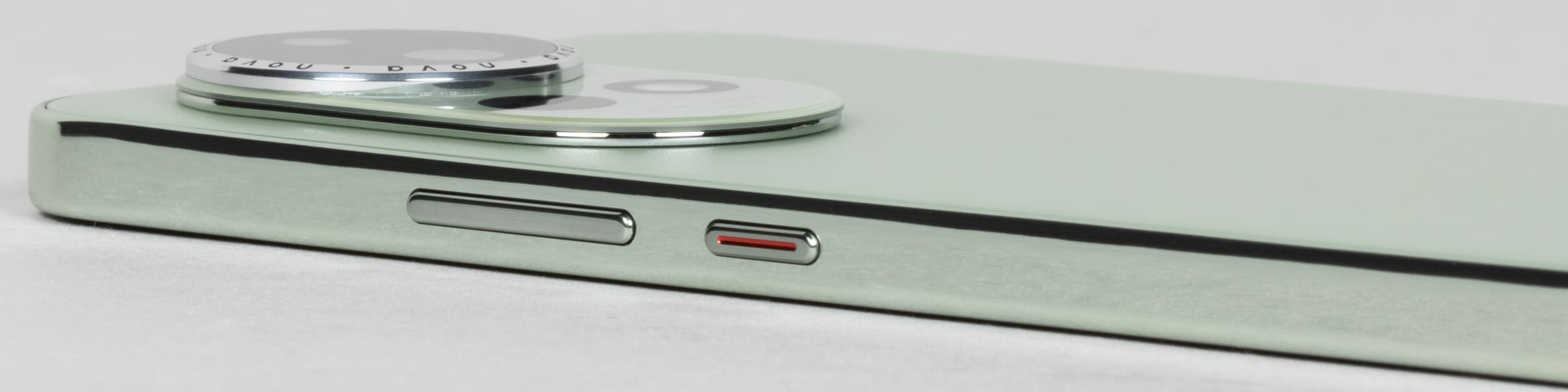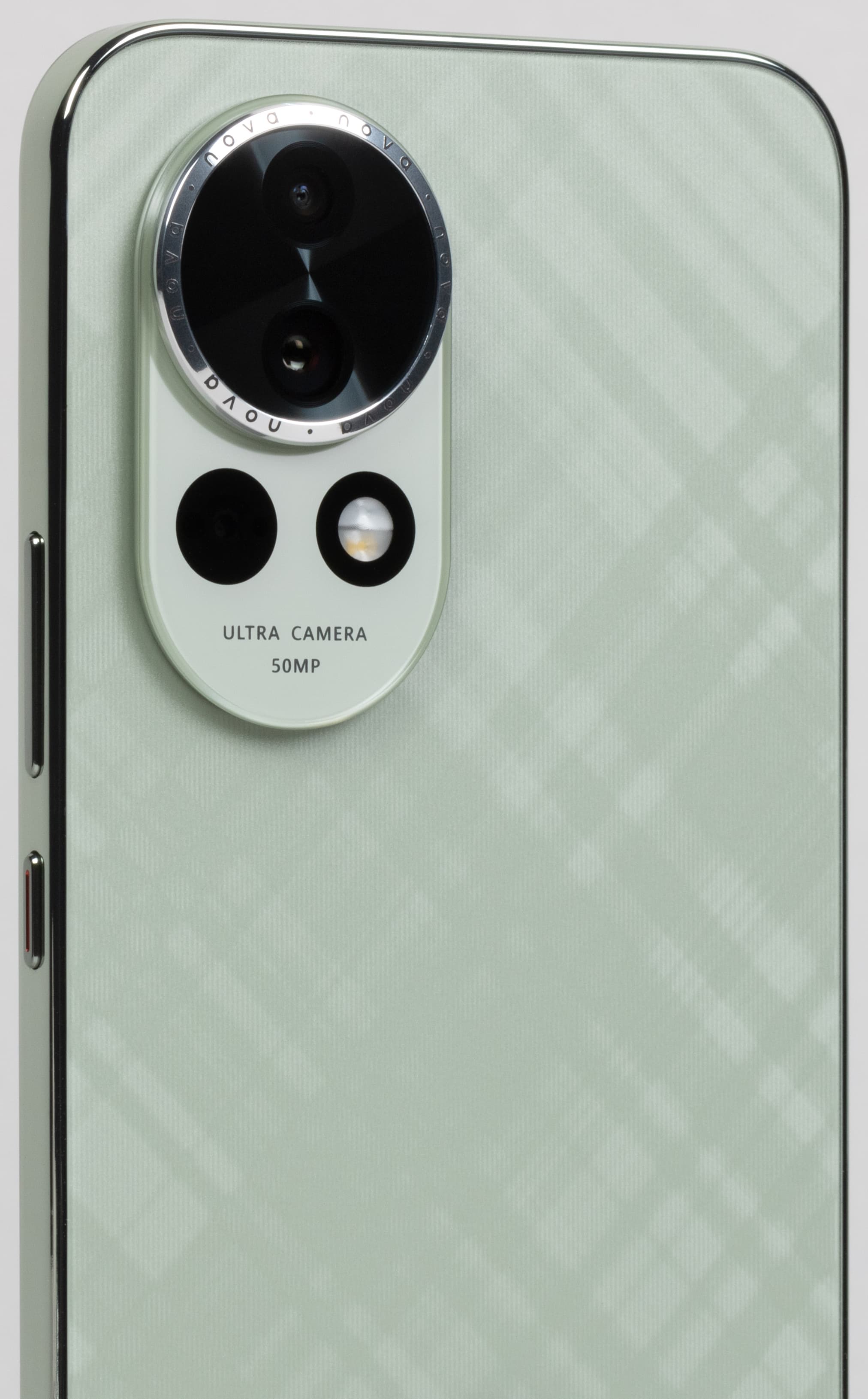Выступающая часть с камерами обрамлена металлизированным блестящим ободком с повторяющейся надписью «nova».