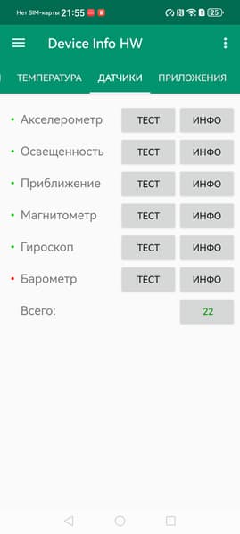 - Датчики приближения и освещения, магнитного поля, акселерометр, гироскоп