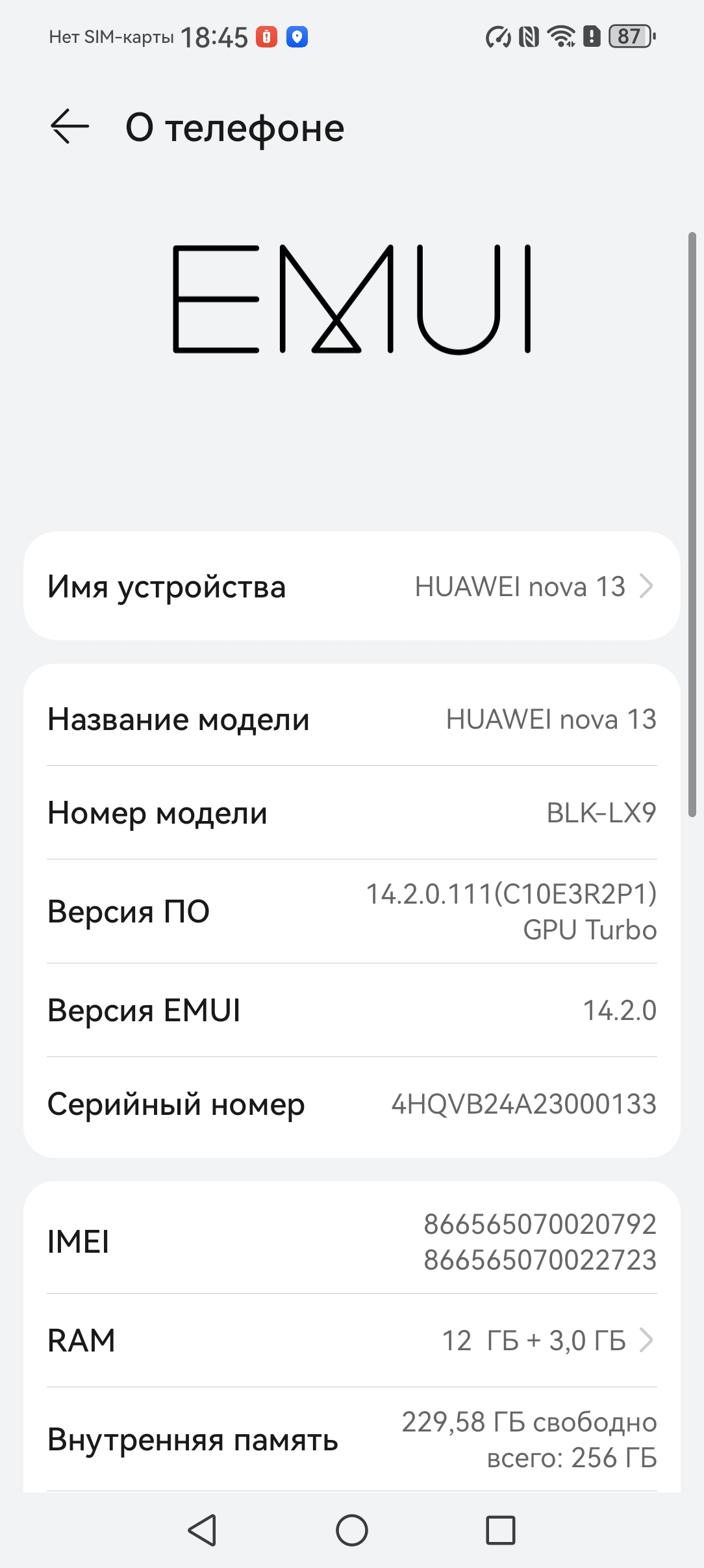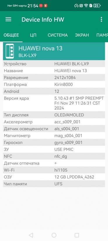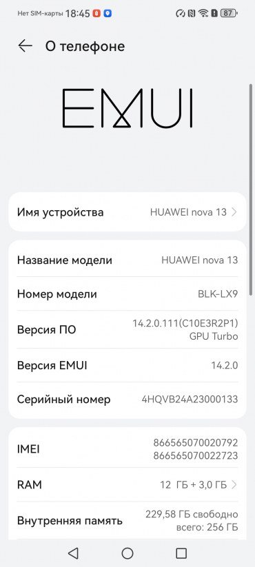 Основные характеристики Huawei nova 13 (модель BLK-AL80)