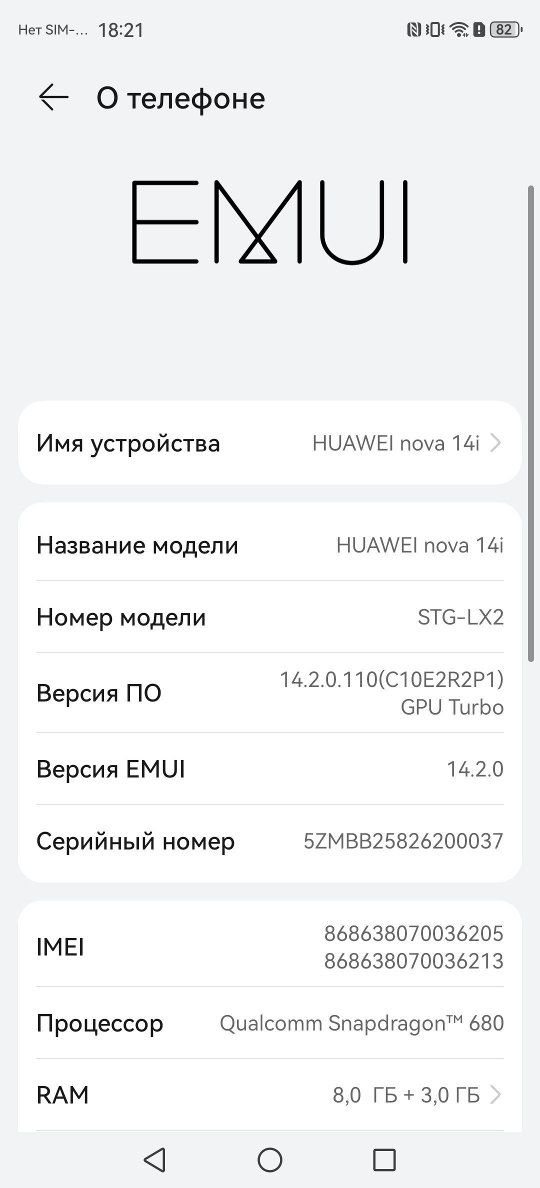 Основные характеристики Huawei nova 14i (модель STG-LX2)