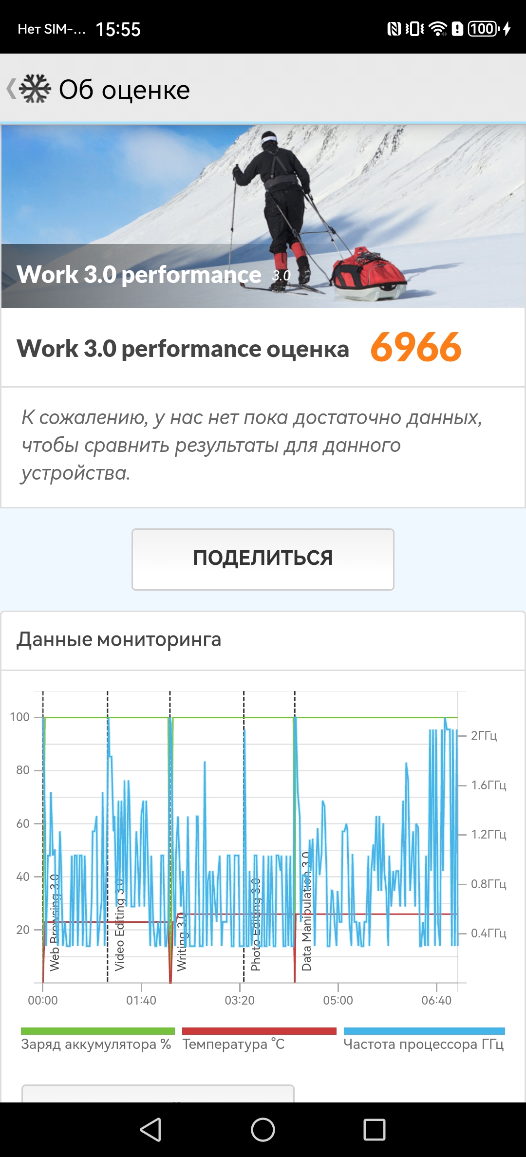 Тест на снижение производительности при нагреве мы проводим с помощью программы Burnout Benchmark, которая позволяет нагружать CPU, GPU и NPU. Уровень тротлинга GPU сравнительно невысок, но это единственное достоинство SoC.